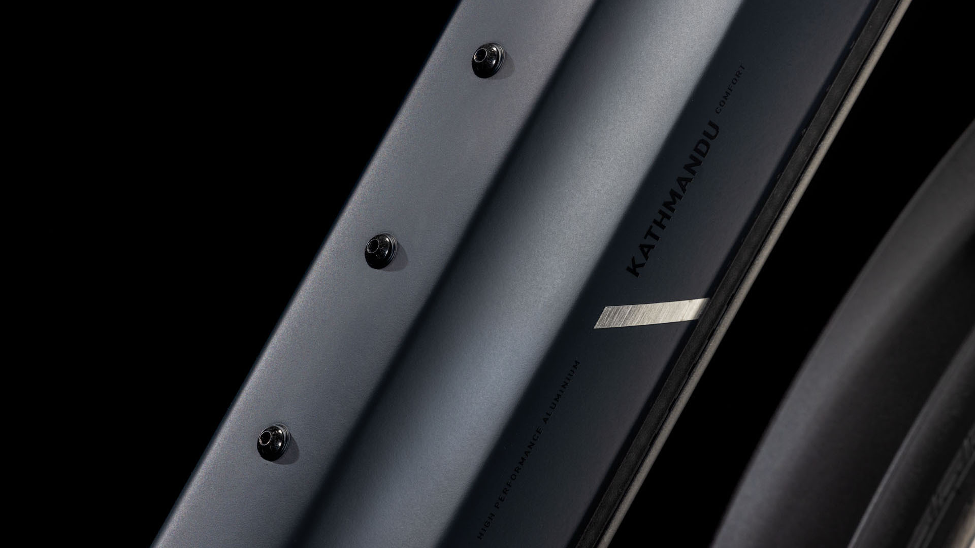 Le cadre Easy Entry du Kathmandu Hybrid est conçu pour tenir ses promesses, rendant le cyclisme aventureux aussi accessible et simple que possible. Le moteur Bosch CX soigneusement intégré et la batterie PowerTube de 800 Wh ne sont qu'un début. La géométrie Effcient Comfort est conçue autour d'une fourche suspendue avec un débattement de 100 mm, pour un meilleur contrôle même lorsque les conditions deviennent difficiles. Les câbles intégrés complètent les lignes épurées du cadre et contribuent à réduire le besoin de maintenance, sans oublier la patte UDH robuste, polyvalente et évolutive. Et bien sûr, il y a un support de garde-chaîne intégré et notre Integrated Carrier 3.0 résistant, robuste et exceptionnellement soigné, pour que vous puissiez transporter tout ce dont vous avez besoin pour vos aventures.