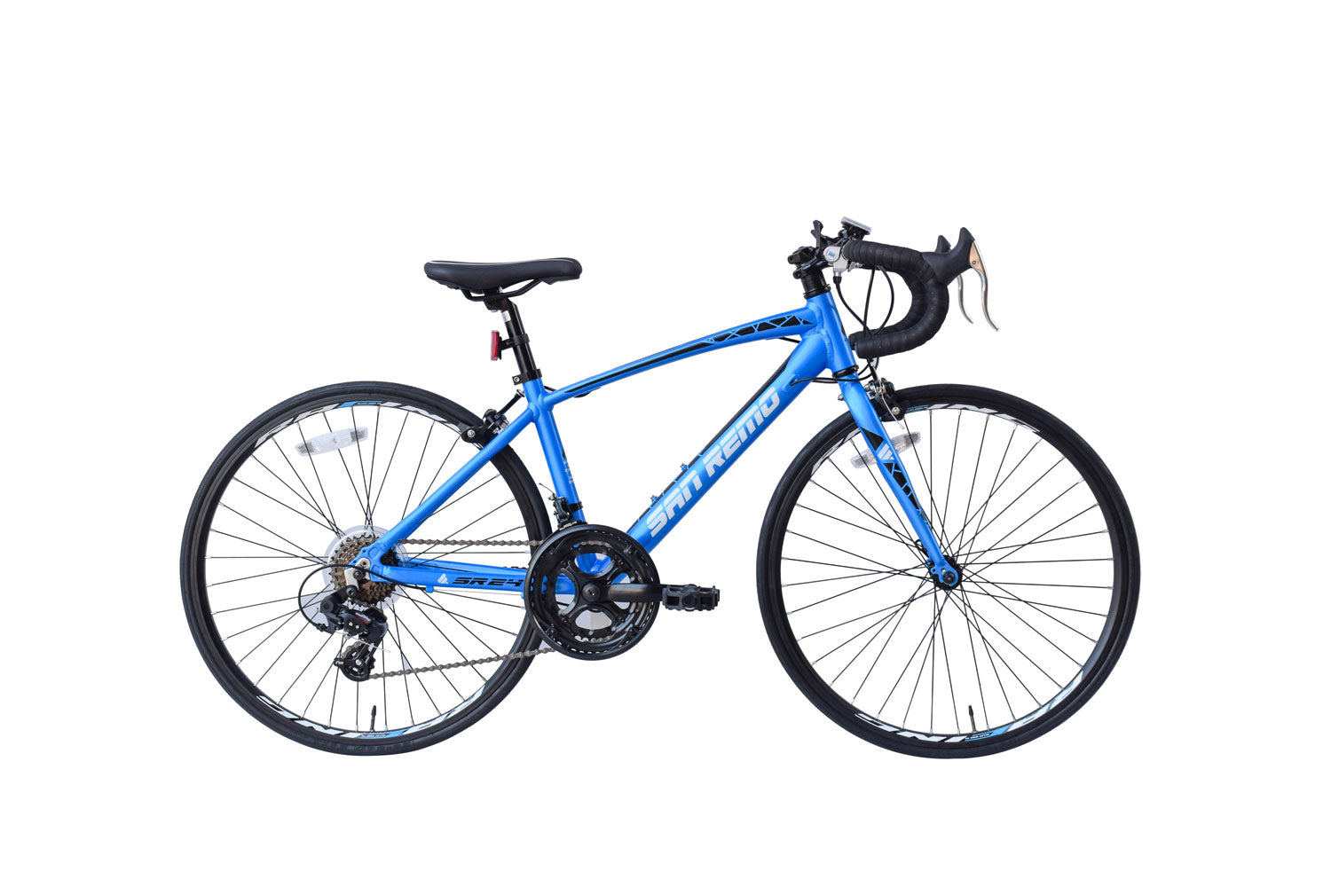 remplace le Roubaix 24") Vélo de course alu avec cadre sloping, pour des jeunes, 14 vit. Shimano Tourney avec des manettes SIS sur guidon, double plateau 42-34D, jantes profilées alu, pneus 25-540 (24"), moyeux à blocage avant, tige de selle alu, freins et leviers de frein alu, jeu de leviers de frein en plus pour les plus petits.
